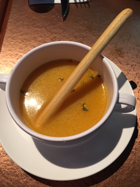 餐湯係南瓜忌廉湯, 味道比較淡口