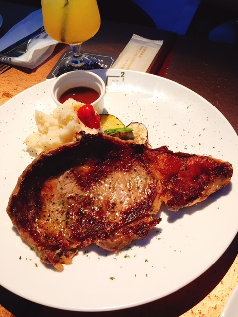 主菜: 黑安格斯肉眼牛扒 (七成熟), 份量有8安士, 肉質算Juicy, 配以香滑薯蓉, 食晒都幾飽肚