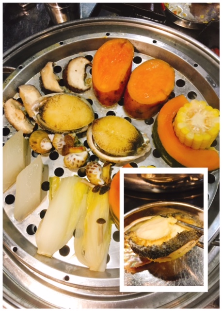 每層都有日本蔬菜作配菜, 另追加為$58一盤, 個人最為欣賞係木瓜, 蘿白及南瓜, 甜度十足, 尤其以蒸既方法最能食出佢既甜味