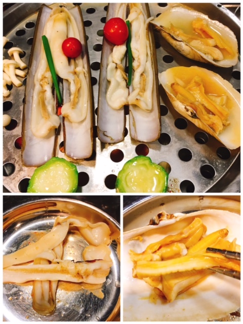 第二層為韓國象拔蚌及蟶子, 象拔蚌已處理成一條條, 進食時就方便D; 蟶子都幾大隻, 兩隻食落都有彈牙感及鮮味