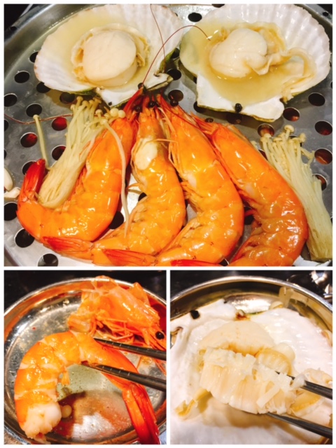 第三層為海蝦及元貝, 兩者亦係重量級, 蝦肉彈牙無比; 元貝厚肉但唔會韌, 超鮮甜