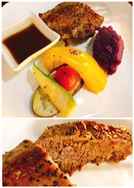 呢款西班牙橡果級黑毛豬肉眼蓋 - 一客兩件, 肉質比較有咬口但又唔會有嚡口感覺, 配以燒汁一齊食都好夾; 另外亦留意到佢地既配菜唔用炸薯條而改用紫薯肉, 食得更有均衡營養及健康, 要比個: 讚!