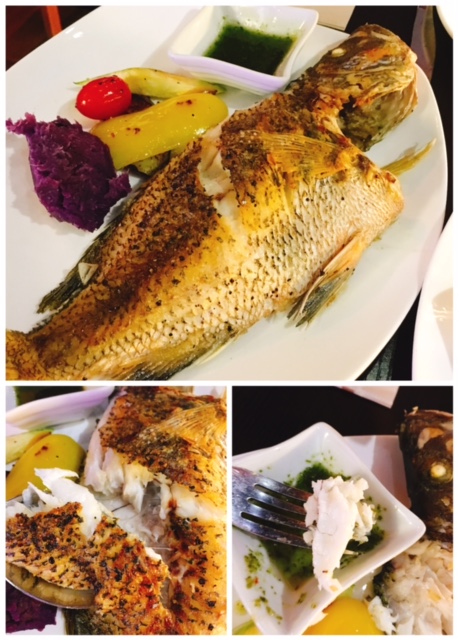 食到呢度, 基本上都已經飽左一大半, 但無理由浪費期待已久既主菜?! 今次點左香燒全條鮮魚配酸甜香草汁, 全條燒既鮮魚唔係好多地方有得食, 餐廳每日會根據買到咩鮮魚而有咩魚供應, 今晚呢條係盲曹, 份量都幾大條, 燒到皮香肉嫩, 好彩魚本身無咩細骨, 食得都好方便, 亦都配以酸甜香草汁, 簡直將味道提昇!