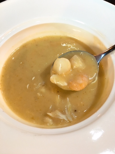 湯類要左創意度十足既海鮮冬陰忌廉湯 - 泰式香料配以西式煮法會係點? 口感細滑, 味道幾辛辣但絶對接受到, 湯中包括帶子粒, 蝦肉及蟹肉, 不欺場!