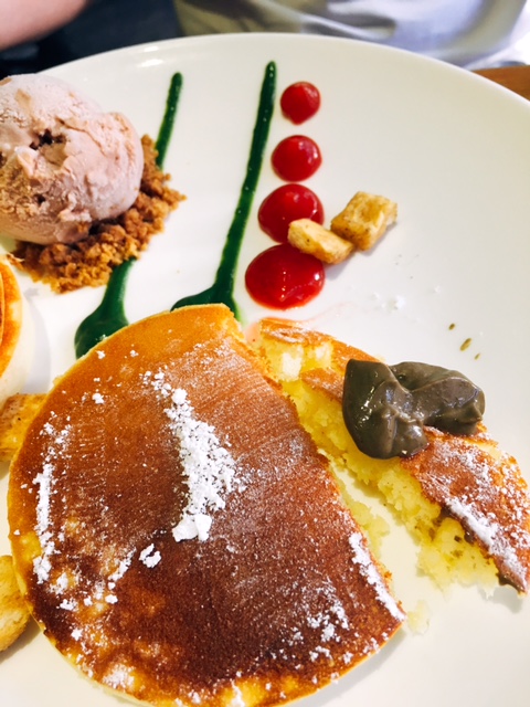 講返個主角鬆餅先, 好軟熟, 面頭灑上少許糖粉, 而個金莎朱古力脆脆雪糕球都好香金莎朱古力味, 喜愛食金莎既朋友應該好LIKE! 朋友最喜歡佢個抺茶醬, 充滿抺茶香味又唔甜, 減少"膩"既感覺!