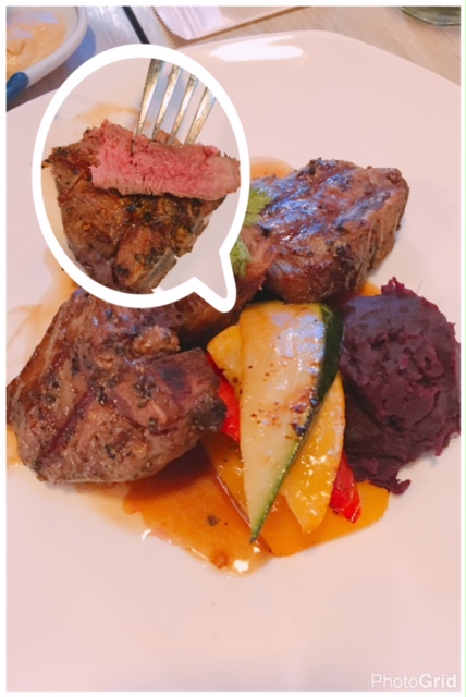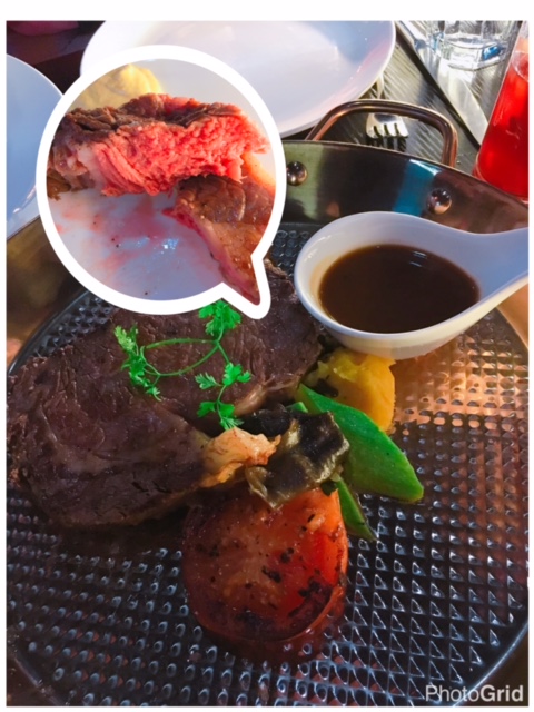 慢燒美國牛肉眼 (約4成熟) ($388), 哇....重量級牛肉眼上枱時都嚇一嚇我地, 咁大塊既? 目測應該有10-12安士, 由於約4成熟, 切開仍然見到有紅色, 配上燒肉汁及芥末, 一放入口食到超濃肉味又夠多汁, 岩晒牛魔王朋友!