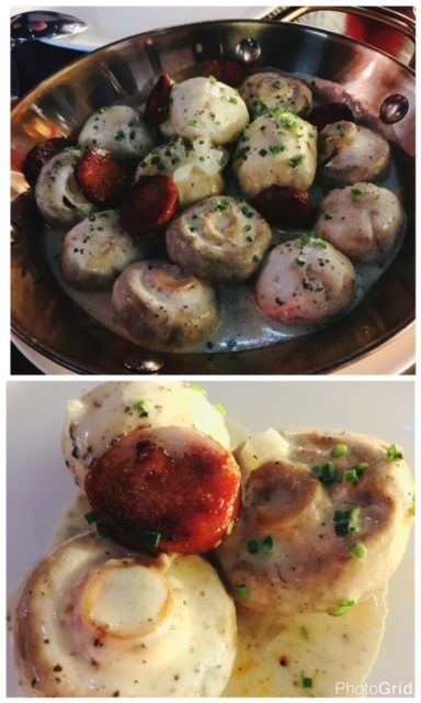 松露法國原粒磨菇 ($98), 呢款係以法國原粒磨菇配松露忌廉汁, 食時切半片西班牙鮮辣肉腸夾埋磨菇一齊食, 帶淡味又多汁既磨菇同香辣肉腸味道互相配合, 一淡一濃, 呢個配搭幾好!