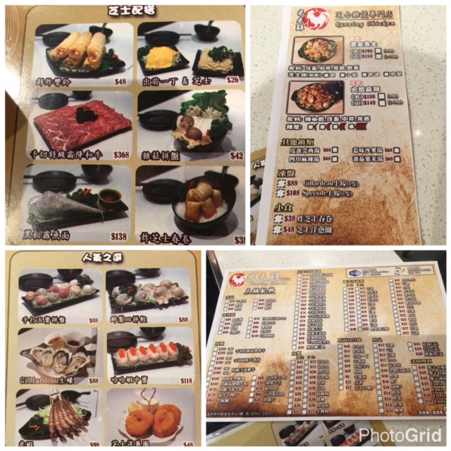 餐紙上列出超多火鍋配料, 鷄煲有火燄麻辣/黃金之士選擇, 亦有"人氣之選"及"芝士配搭" 推介!