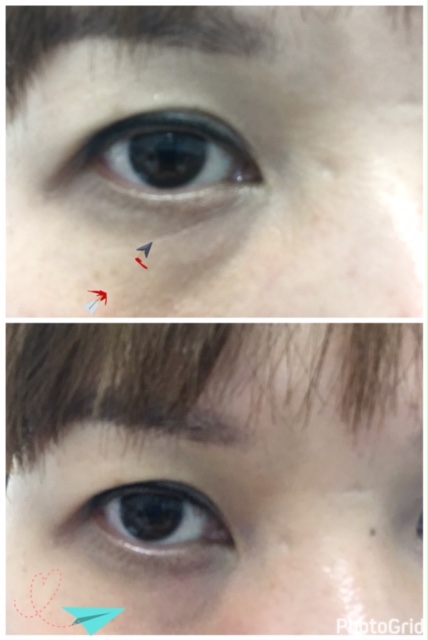 上: 明顯見到眼肚位置有眼紋