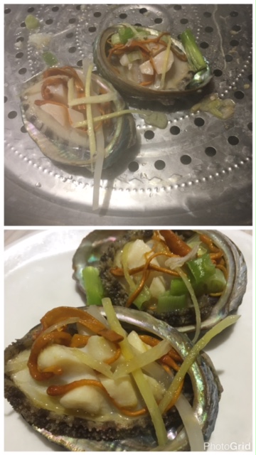 最後一款係北韓鮑魚 (每位一隻), 唔算大隻, 面頭舖以薑絲及蟲草花, 食落絶對爽口彈牙! LIKE呀!