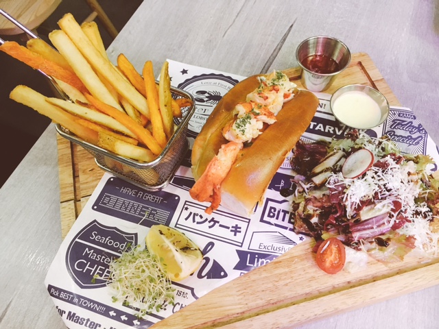 早前係朋友fb洗版既火紅既龍蝦包, 呢度都有得食, 當然要試下, 除了主角龍蝦包($188)外, 仲有薯及蕃薯條一籃及沙律菜, 無論份量及賣相都相當吸引