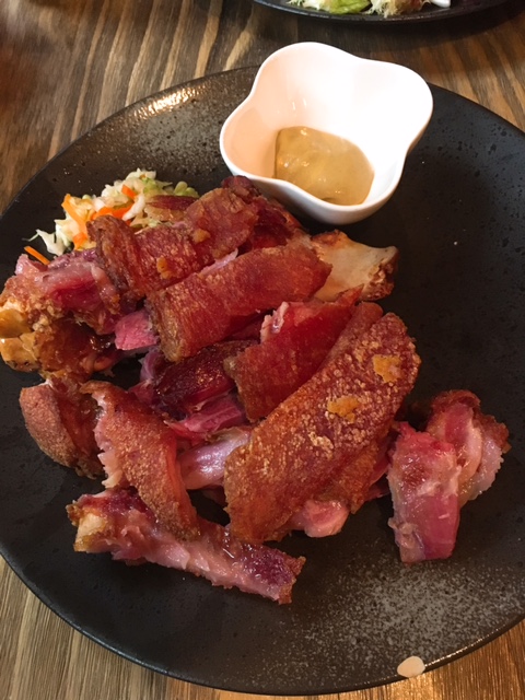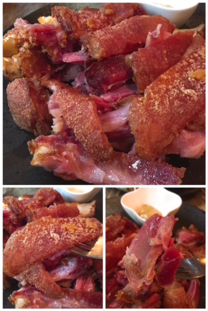 餐廳推介之一德國脆皮咸豬手, 上枱時已經聞到好香燒肉味, 熱辣辣伴以芥辣及酸椰菜絲, 成隻咸豬手份量十足, 足夠同友人開心share, 已經切好一舊舊方便進食, 皮係脆, 食時仲聽到"咯洛"聲, 肉唔會燒到太乾身, 咸味適中!
