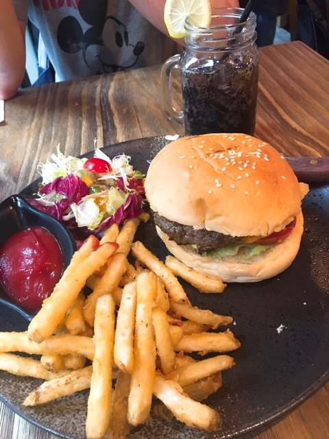 主菜點了呢款美式特厚芝士漢堡包, 落單時侍應會詢問想要幾成熟? 點左七成熟, 咬落仍然帶有肉汁, 但邊位方面比較硬左D, 若果要4-5成熟就應該無問題 (早知聽侍應講啦!), 不過個包有埋芝士同蕃茄片一齊食係好味既, 個包本身又夠鬆軟, 唔會食左一口乾! 仲有佢伴碟既炸薯條都炸得好香脆同唔油膩, 千祈咪漏左佢呀!