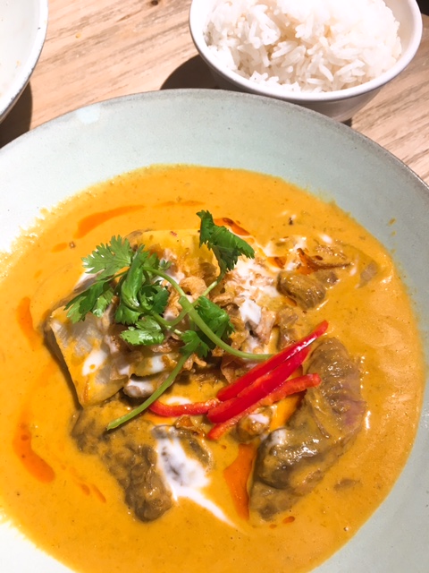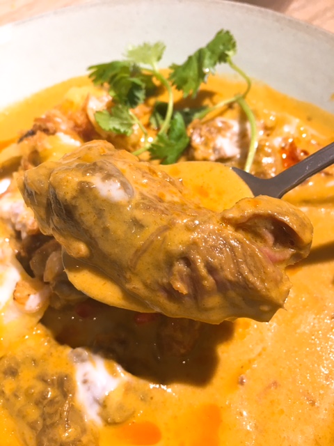 主菜類叫了黃咖喱牛腩 ($88)另加白飯($10), 黃咖喱既辣度屬於入門初級, 咖喱汁香中帶少辣, 用黎撈飯就正配; 而個牛腩切得大細適中, 煮得好入味, 口感腍滑, 輕輕咀嚼幾下就可吞下, 仲有薯仔及洋葱作配菜!