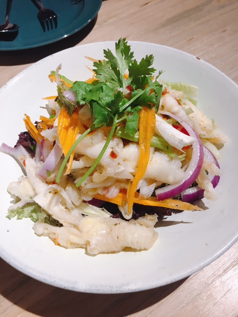 呢客鳯爪沙律 ($58), 材料豐富包括爽口鳯爪, 食落有D辣味而且夠入味, 配以爽口多汁沙律菜, 紅蘿蔔絲, 惹味紫洋葱, 撈埋酸辣汁, 開胃又醒神, 確係幾泰式風味!