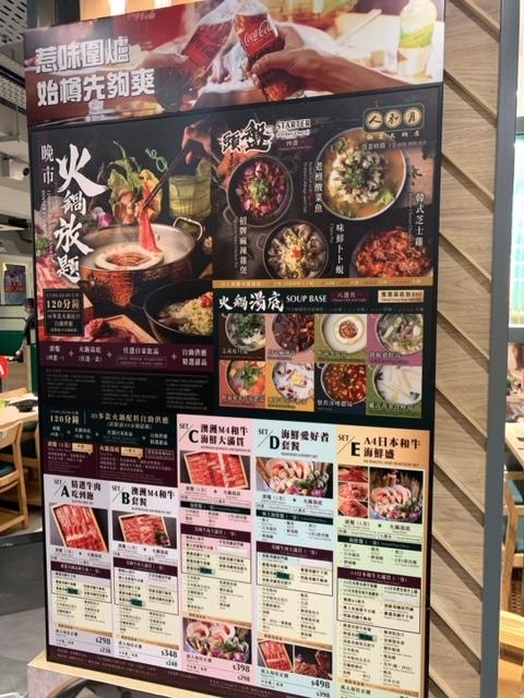 共有五個價錢嘅套餐,由美國高級牛肉 ($298/位)至A4日本和牛海鮮 ($598/位),食足120分鐘