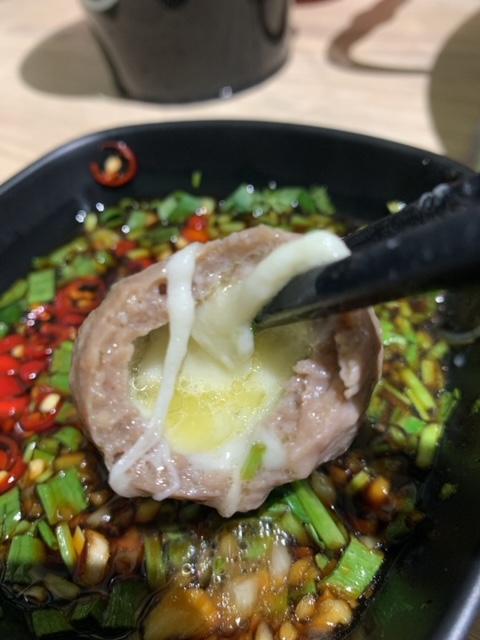 粒芝士牛丸外面相當結實,咬入去係芝心,相當邪惡