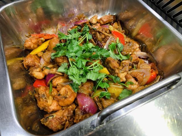 辣度要小辣,加入大量洋蔥,薑片,蒜頭及芹菜,再用惹味鷄煲醬汁一齊炒,鷄件索入醬汁,一件駁一件食唔停口。