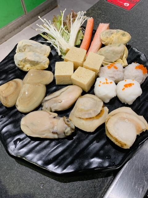 海鮮類有帆立貝,日本廣島蠔,蜆