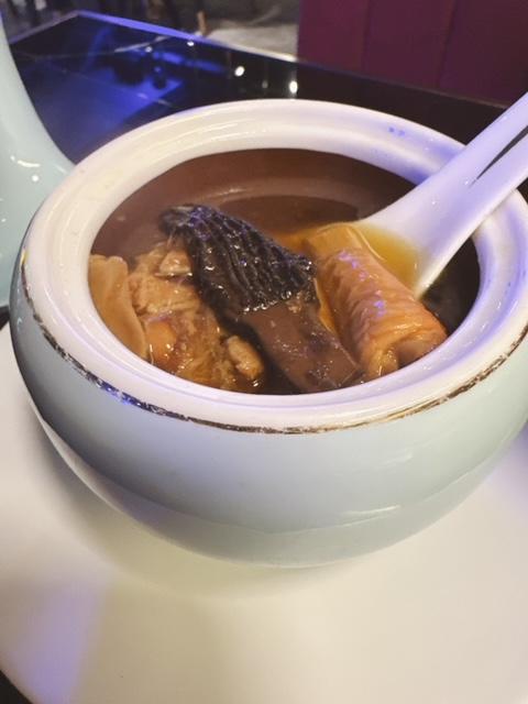 松茸羊肚菌雞湯,有養顏養胃、滋陰益氣嘅功效。兩款都係很珍貴嘅食用菌,配合埋老鷄一齊燉,入口鮮甜無比,熱度滿分,飲完成身䁔晒~