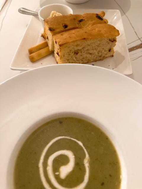 是日餐湯係菠菜忌廉湯,咸淡適中,飲到微微菠菜味,再配上意大利餐飽,和暖又飽肚。