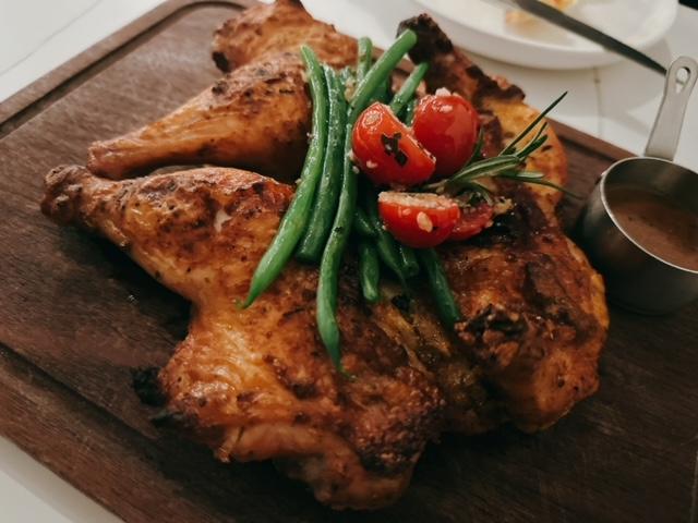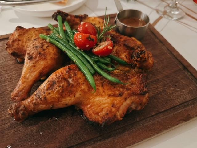 食緊最後一件薄餅時,呢客燒美國原隻春鷄就送到上枱,時間岩岩好。