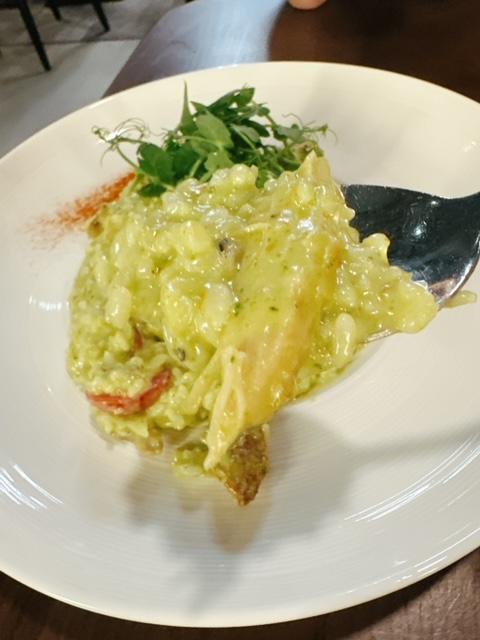 鷄肉係煎過嘅,比起其他店就咁烚完就煮,入口帶點焦香; 每粒飯都比青醬包圍住,creamy得黎又唔會太膩,食晒都唔會太大負擔。