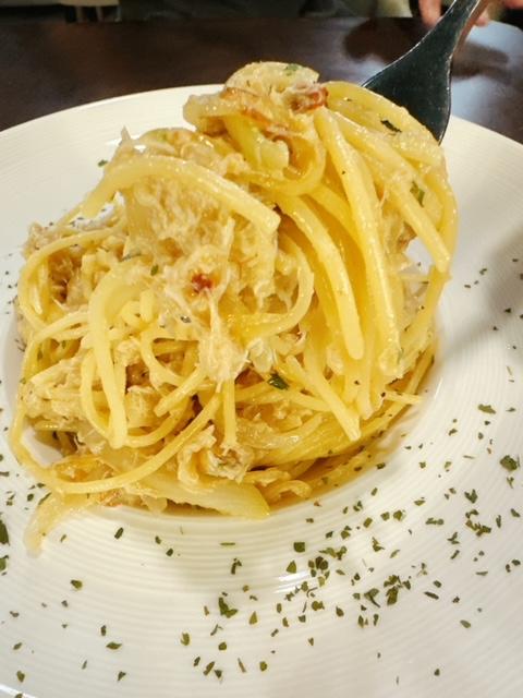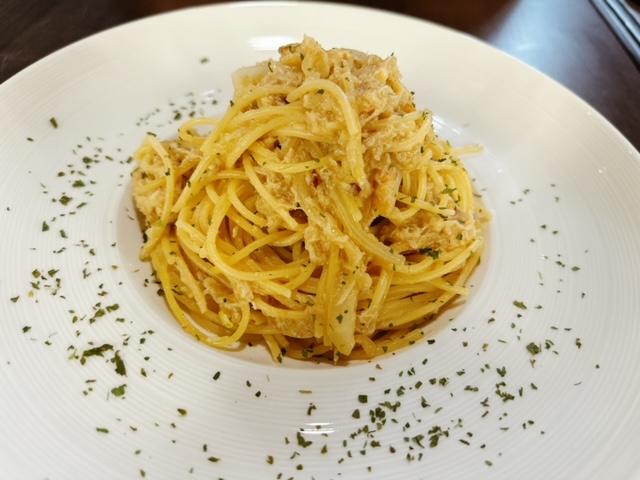 撈均後差唔多啖啖都食到蟹肉,香蒜味好出,而意粉係有口感嘅,成件事互相配合得唔錯,係好味嘅。