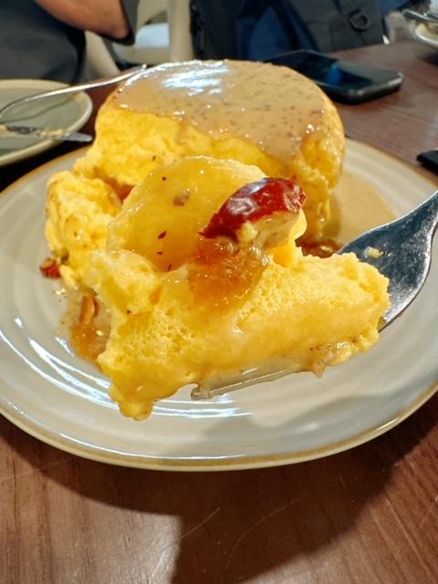 梳乎厘班戟入口超鬆軟,先有蛋香味,繼而紅棗味就慢慢爆出,味道唔會過濃,始終紅棗味唔係個個岩,加埋燕窩一啖放入口,女士們食咗補身又養顏,哈哈哈。