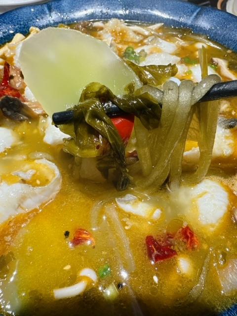 湯底有酸菜,酸度岩岩好,亦有萵荀片,菇菌及薯粉條,多種口感。