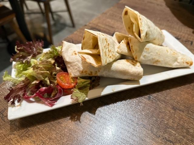 呢客係墨西哥香草牛柳絲卷餅 ($68),切成4小份,另有沙律菜伴碟。