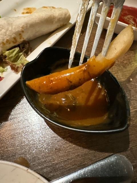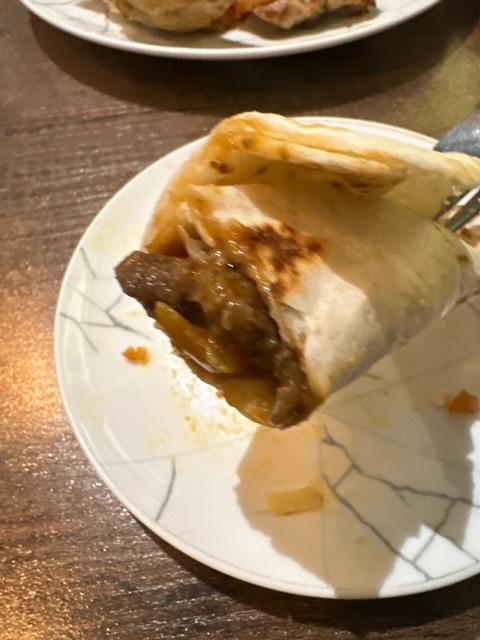係墨西哥卷餅中包入牛柳絲,牛柳絲比較濃味D,正正與淡味卷餅均衡返,食晒成條都幾飽肚。
