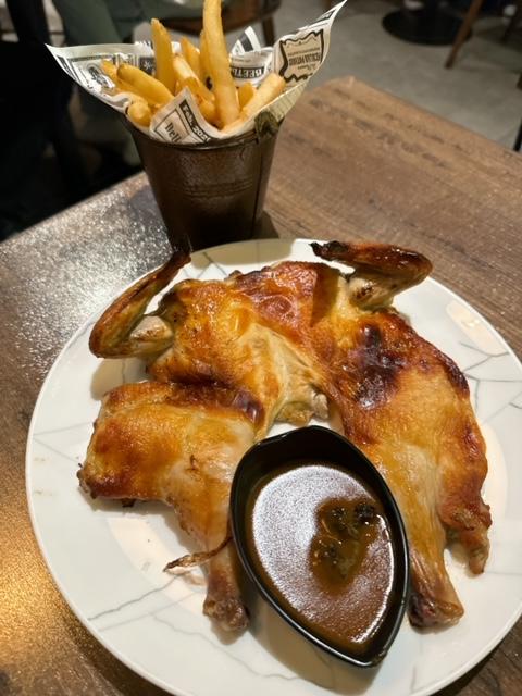 來來來………….主菜出場啦。黑松露燒春鷄是也,仲有薯條另上。