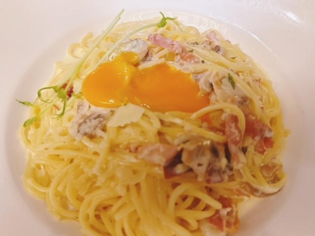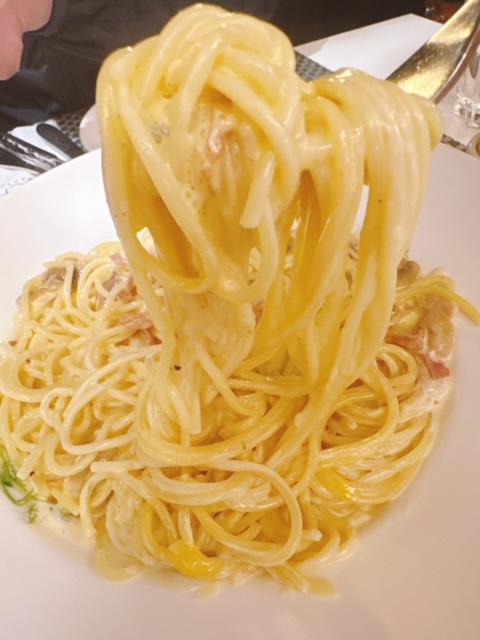 帶口感嘅意粉,每條都被香濃芝士蛋黃汁包圍住,呢個醬汁相當出色,多食都唔會覺膩,偶爾食到菇菌片同煙肉片,加入蒜粒一齊煮,多一份蒜香味,好好味呀。