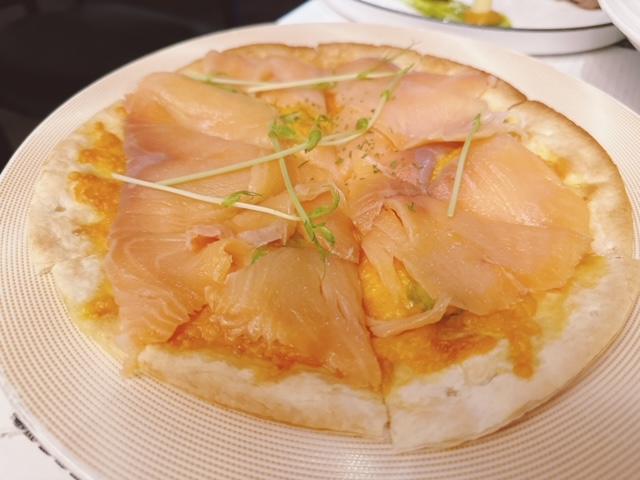 兩款薄餅中,最後勝出嘅係呢客煙三文魚牛油果薄餅 ($148),煙三文魚舖滿整個薄餅面,趁熱食啦喂。