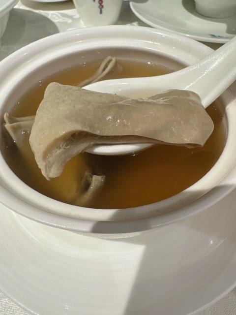 熱度相當夠,味道比起胡椒豬肚湯為清淡,飲到少少胡椒味,微辛又香; 豬肚入口腍滑,飲完感覺舒服。