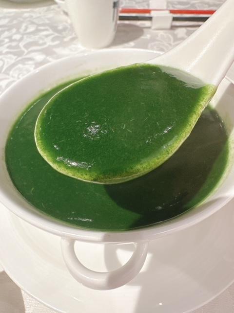 入口比起粥更滑,材料主要係菠菜及魚肉,打爛成蓉再煮成湯。食到菠菜及魚肉味道,感覺相當有營養。