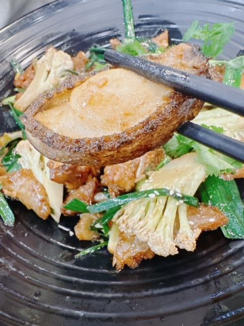 醬香味道濃味中帶少少甜味,基本上與大部份食材都夾到。鮑魚厚肉,口感彈牙,去埋殼食起黎相當方便。