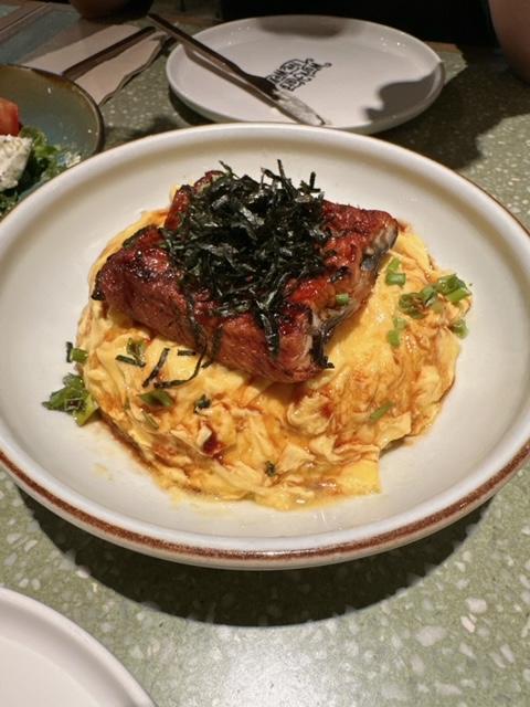 以滑蛋奄列包住白飯,再放燒好嘅鰻魚及紫菜絲,和風味倍增。