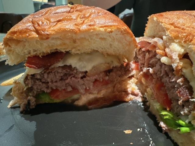 要讚嘅係飽身有烤過嘅,食起黎鬆軟得黎亦有D脆口,除咗有多肉汁嘅手打牛肉漢堡外,仲有片煙肉,唔係求其煎,入口有食豬肉乾嘅味道; 配以芝士,蕃茄同生菜呢D最佳拍檔,看似簡簡單單但又D驚喜位。
