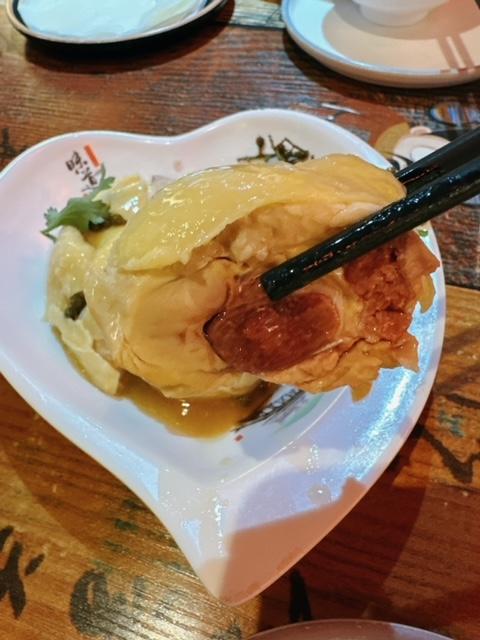 係其他地方食就只有主角,呢度有埋麼麼皮,將佢地放入皮上再包住食