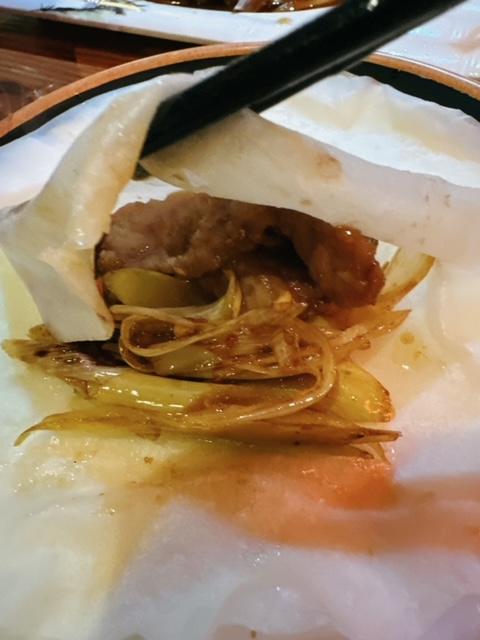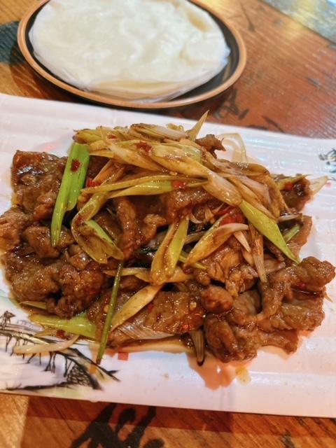 再來就有京蔥牛肉 ($88) 配6張麼麼皮
