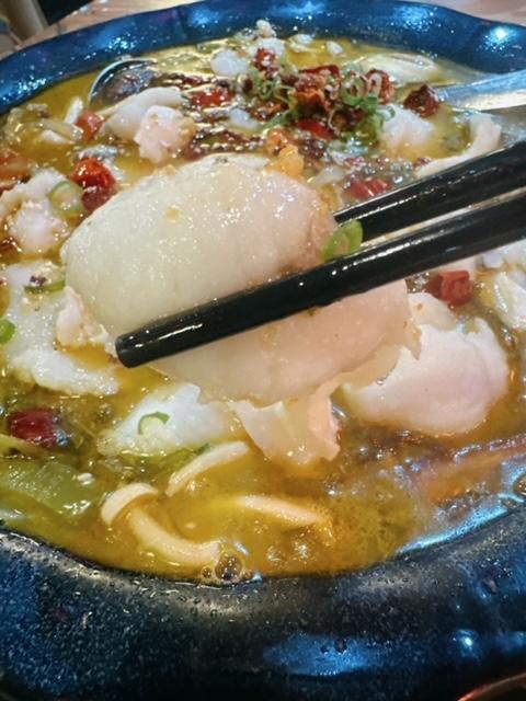 壓軸出場有金湯酸菜魚 ($188),一大盤份量都夠2-3人食。有得選擇辣度,要咗小辣。