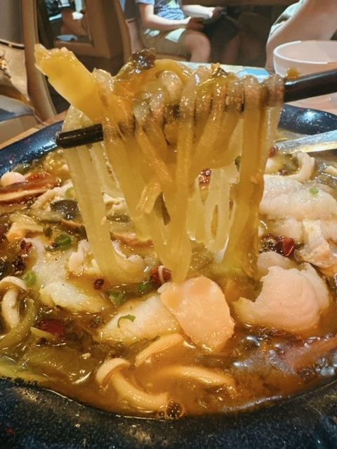 金湯味道酸辣唔會嗆喉,仲有其他配料如酸菜,菇菌及薯粉,相當有睇頭。