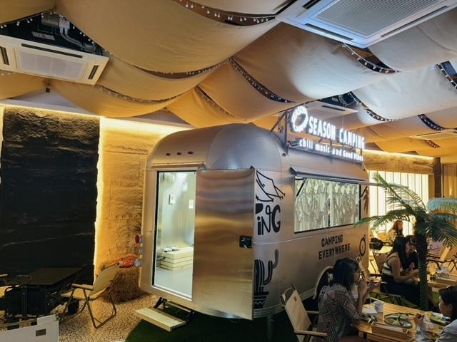 全店傢俱都系以露營為主題,中間放置露營車,成為打咭熱點,車內仲可以用餐。亦有戶外用餐區,涼D子坐出去應該都幾有FEEL。