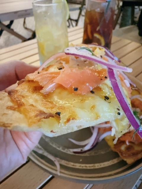 薄脆餅底,鹹香煙鮭魚與甜蜜柚子醬結合在一起,甜中帶鹹,又有紫洋蔥嘅爽脆度,每人兩件輕易搞掂。