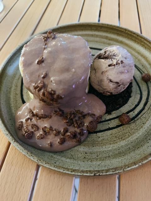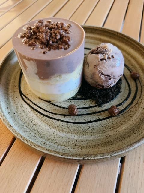 胃部仲有空間,當然要食埋甜品。呢客阿華田脆脆奶蓋瀑布蛋糕配提拉米蘇雪糕 ($108)就系為呢餐寫上個美味句號。