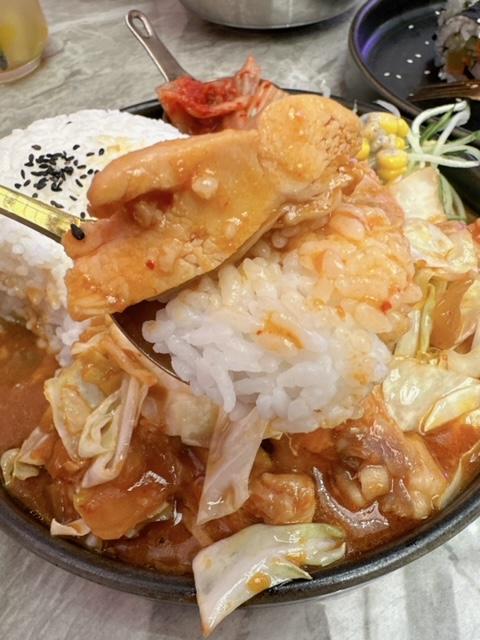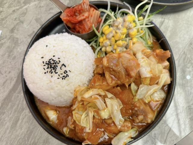 呢客韓式辣鷄扒飯 ($58),份量驚人,二人分享絶無問題; 有埋泡菜及青瓜絲沙律,$60有找,去邊度搵?!