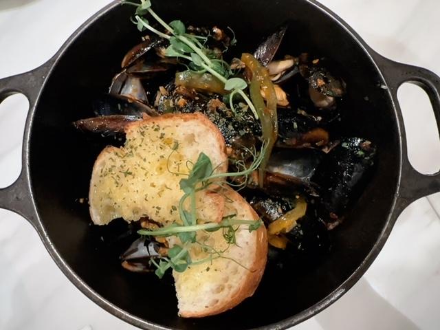 肚餓啦……..先食個前菜先。白酒忌廉煮就食得多,泰式冬蔭忌廉煮青口 ($158)就第一次食,仲有兩片烤麵包用黎點汁食。