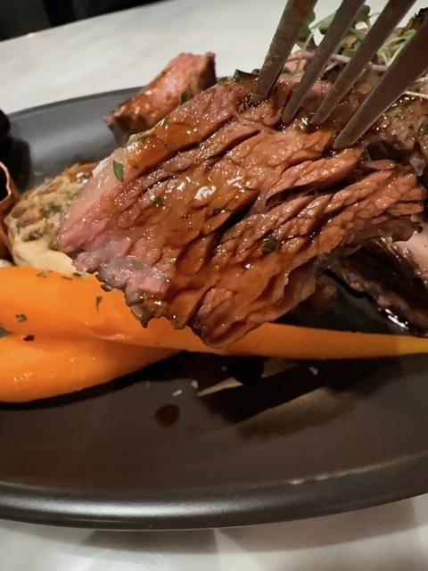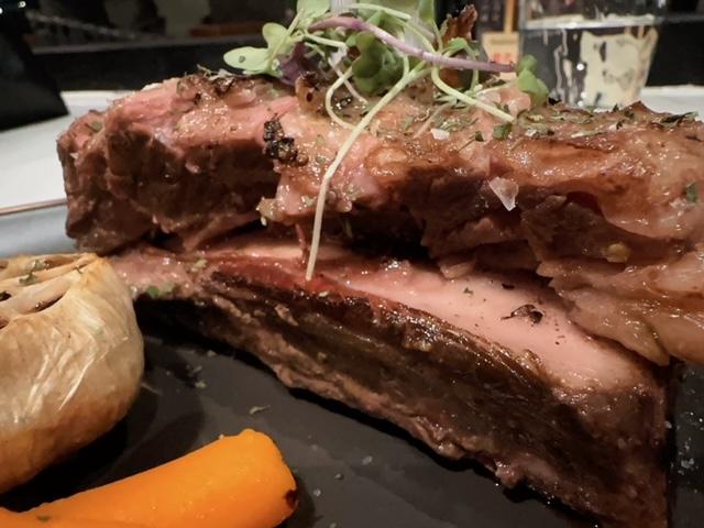 經過慢煮處理,令帶點厚度嘅牛肋骨肉都變得鬆軟,肉汁係口腔內流出,再加埋出色燒汁,咁好味得唔得㗎…?!